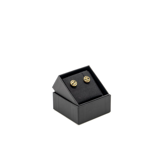 Chanel giant cc logo ear clip enamel black/white gold tone