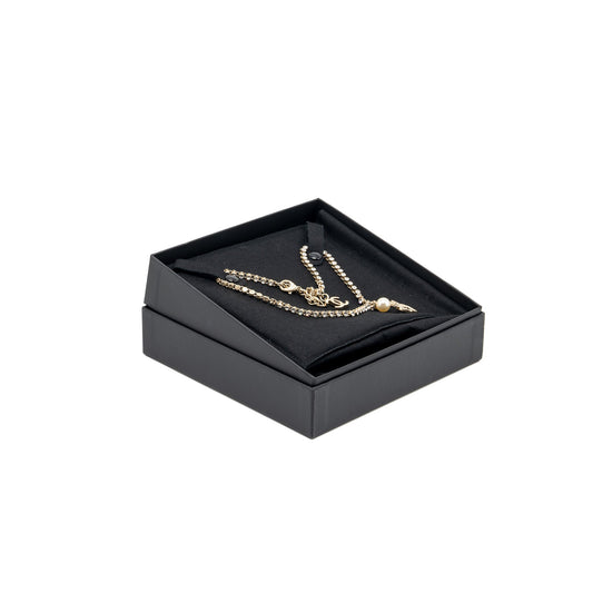 Chanel Pearl and CC logo with crystal chain necklace light gold tone