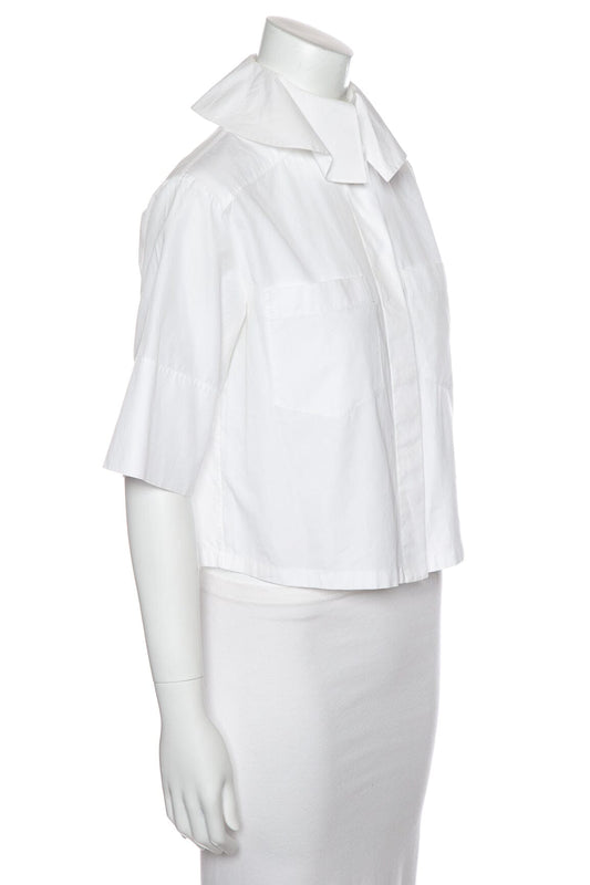 Chanel White Cropped Double Pocket Blouse SZ 34