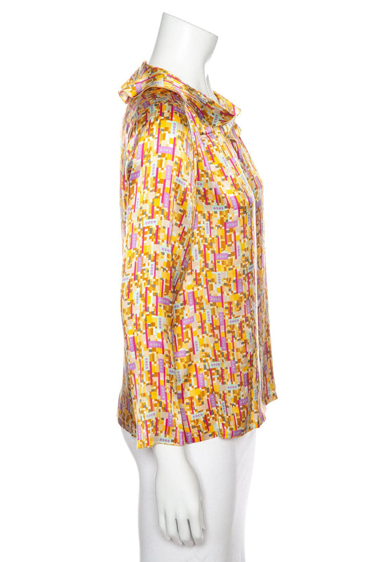 Chanel Yellow Multi "Coco" S/S Button Up Blouse SZ 40