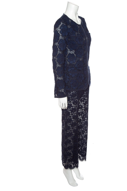 Chanel Navy Floral Lace 2 PC Evening Jacket and Pants Set SZ 34/38