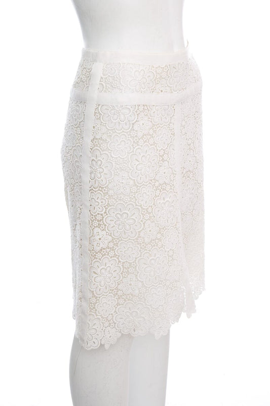 Chanel Ivory Floral Eyelet Skirt SZ 34