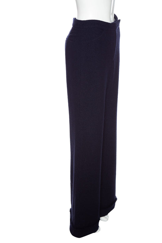 Chanel Navy Wool Straight Leg Cuffed Hem Pant SZ 38