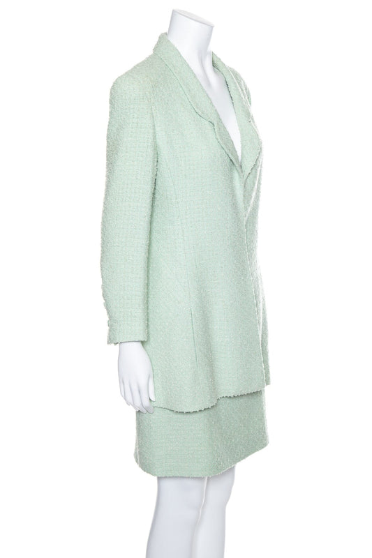 Chanel Mint Tweed Jacket and Skirt Set SZ 42