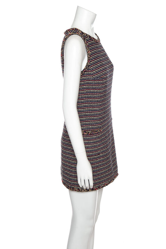 Chanel Multicolor Tweed Sleeveless Mini Dress SZ 38