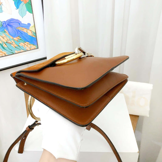 CHLOE Daria Medium Calfskin Leather Shoulder Bag Brown