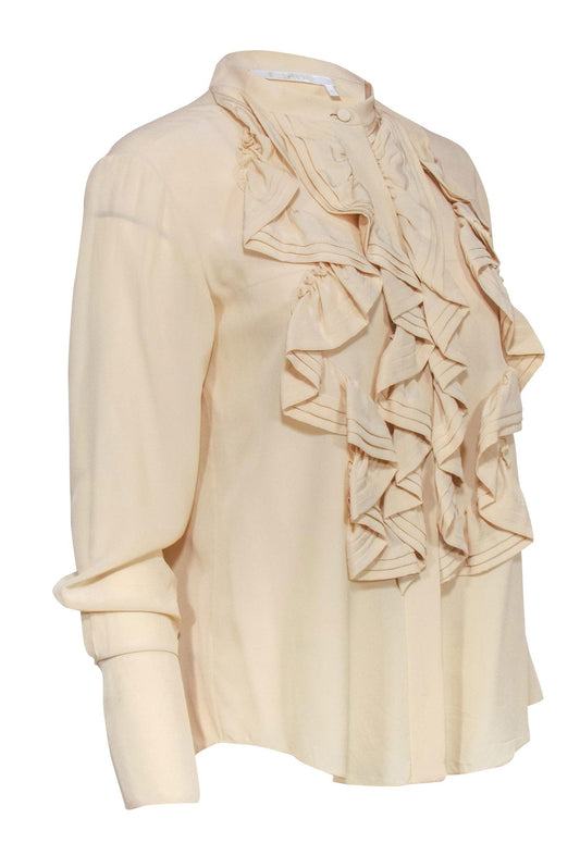 Chloe - Beige Ruffled Front Blouse Sz S