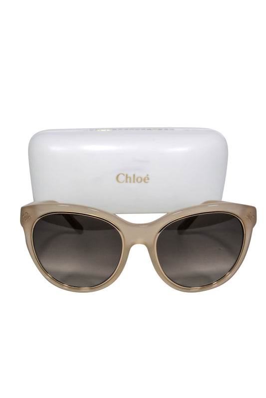 Chloe - Beige Studded Cat Eye Sunglasses