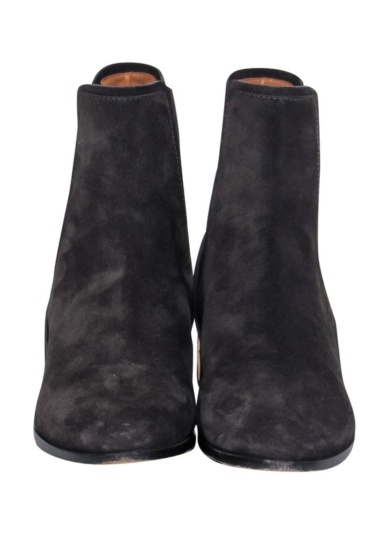 Chloe - Black Suede Chelsea Booties w/ Gold Block Heel Sz 8.5