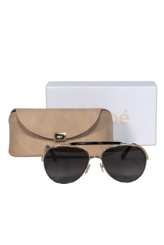 Chloe - Gold & Tortoise Shell Polarized Aviator Sunglasses w/ Brow Bar