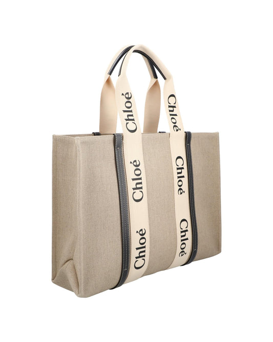 Chloe Woody Tote Medium Canvas Bag Women Black | Black Handbags