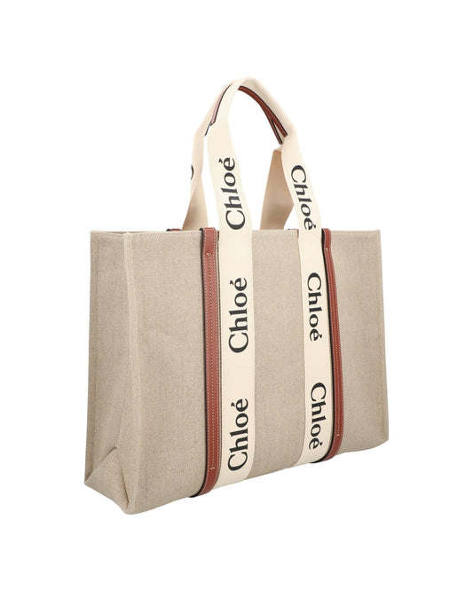 Chloe Canvas Tote Bag with Leather Trim Women Brown | Brown Handbags