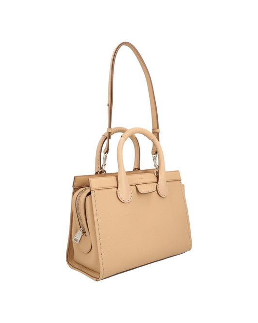 Chloe Woody Small Leather Tote Women Brown | Beige Tote Bags