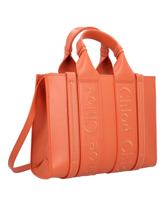 Chloe Woody Small Tote Embroidered Women Orange | Orange Tote Bags