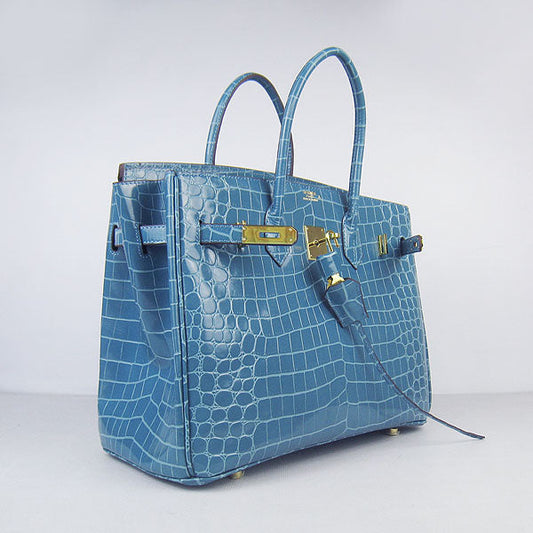 Hermes Birkin 35cm Crocodile Leather Handbag Blue Gold