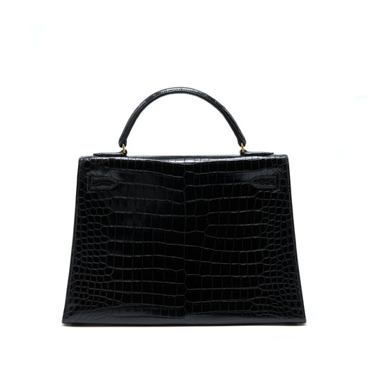 Hermes Kelly 32 Shiny Crocodile Porosus Black GHW Stamp Circle Q
