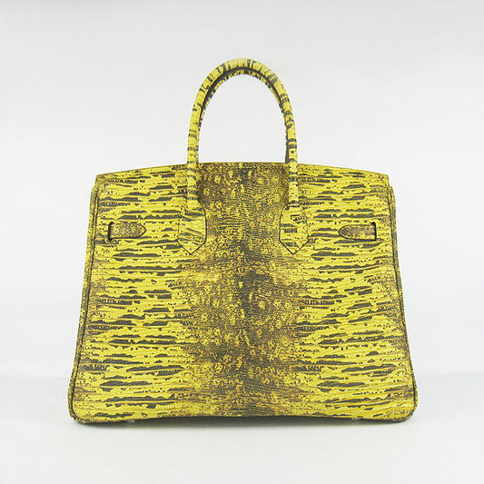 Hermes Birkin 35cm Lizard Pattern Handbag 6089 Yellow/Silver