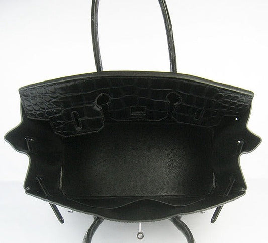 Hermes Birkin 35cm Crocodile Big Veins Handbags Black Silver