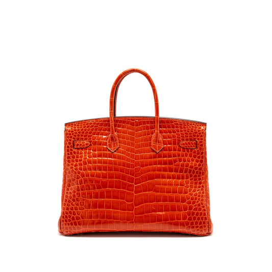 Hermes Birkin 35 Shiny Crocodile Porosus Feu GHW Stamp A