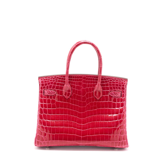 Hermes Birkin 30 Shiny Crocodile Rose Extreme SHW Stamp Y