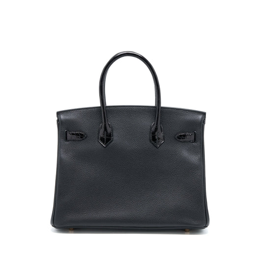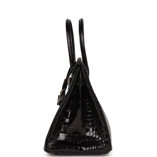 Hermes Birkin 30 Black Shiny Crocodile Porosus Gold Hardware