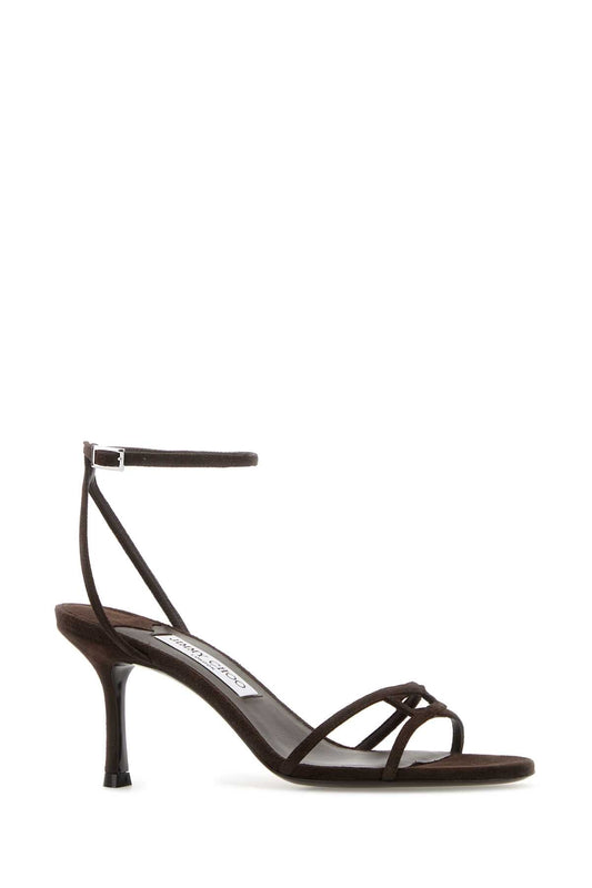 Jimmy Choo Women Brown Suede Leo 65 Sandals