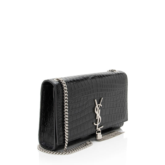 Saint Laurent Croc Embossed Leather Monogram Kate Tassel Medium Shoulder Bag