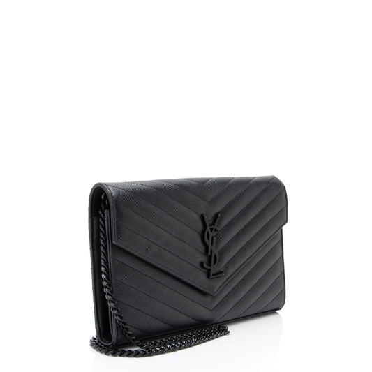 Saint Laurent Matelasse Grain de Poudre Monogram Chain Wallet