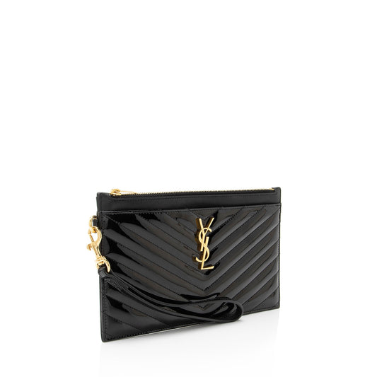 Saint Laurent Matelasse Patent Leather Monogram Bill Pouch