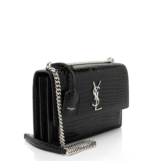 Saint Laurent Croc Embossed Leather Monogram Sunset Medium Shoulder Bag (SHF-M2o6S1)