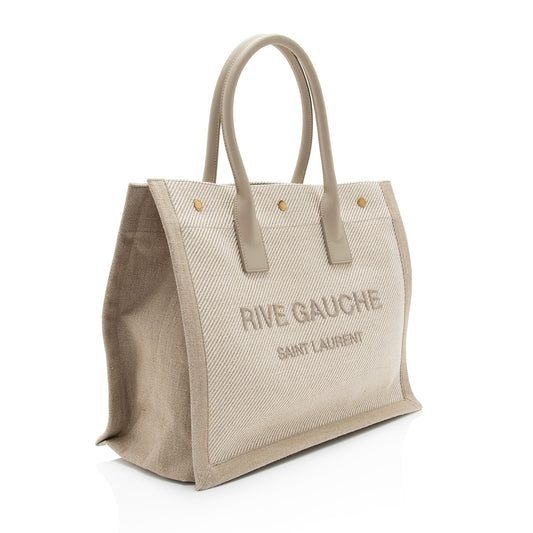 Saint Laurent Canvas Calfskin Rive Gauche Small Tote (SHF-UbHsVK)