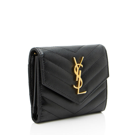 Saint Laurent Grain de Poudre Monogram Compact Tri-Fold Wallet (SHF-j0cHxO)