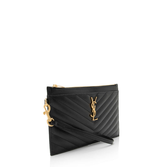 Saint Laurent Matelasse Grain de Poudre Monogram Cassandra Large Pouch (SHF-O12zWn)