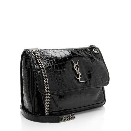 Saint Laurent Patent Croc Embossed Leather Monogram Niki Medium Shoulder Bag (SHF-zhfiM7)