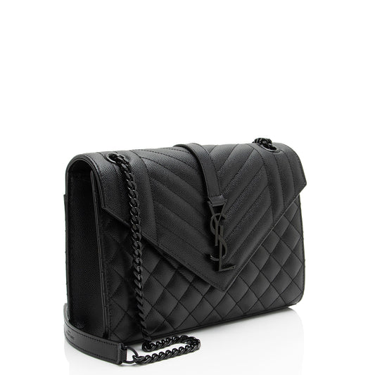 Saint Laurent Mixed Matelasse Grain de Poudre Monogram Medium Shoulder Bag (SHF-bY2Urd)