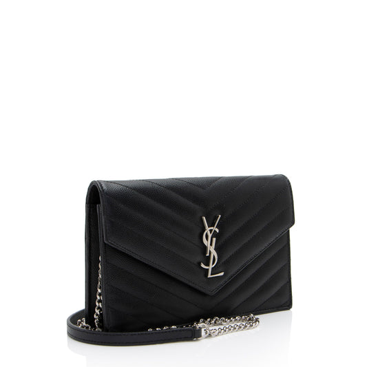 Saint Laurent Matelasse Grain de Poudre Monogram Chain Wallet (SHF-4h5maT)