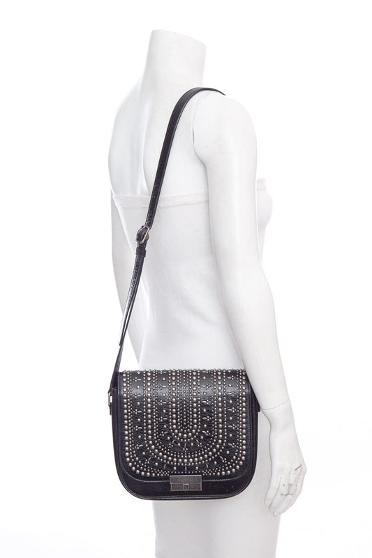 Saint Laurent Amalia Black & Silver Studded Shiny Calfskin Handbag