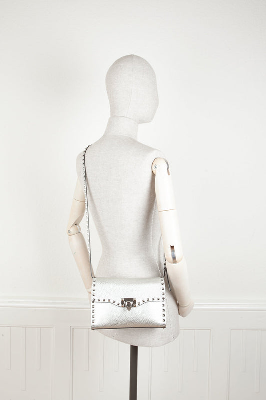 VALENTINO Rockstud Flip Lock Flap Bag Silver
