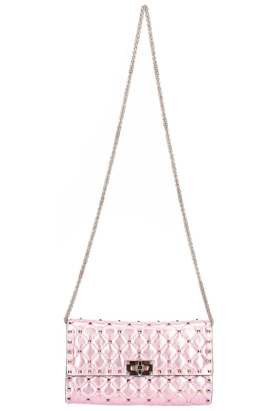 VALENTINO Rockstud Spike Clutch Metallic Pink