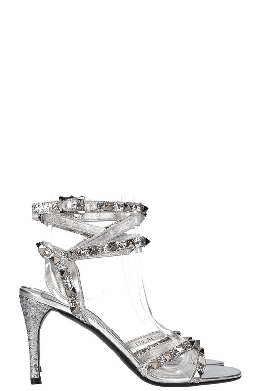 VALENTINO Rockstud Heels Glitter Silver