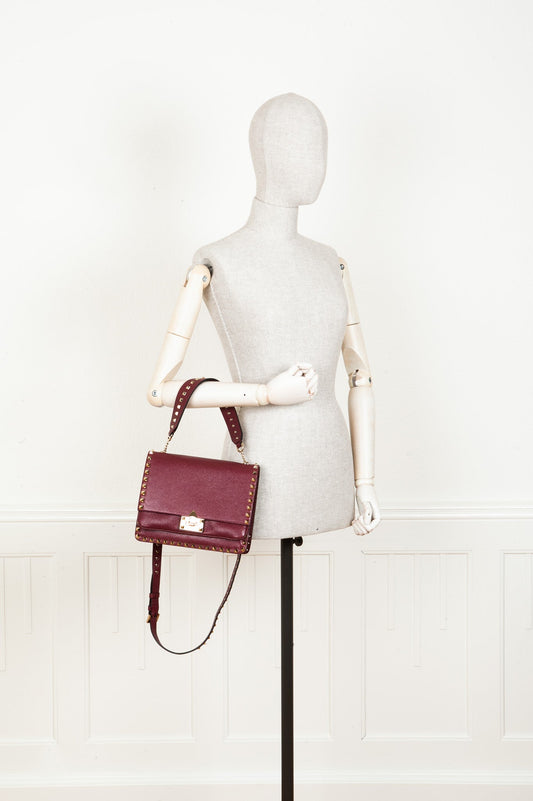 VALENTINO Rockstud Flip Lock Flap Bag Burgundy