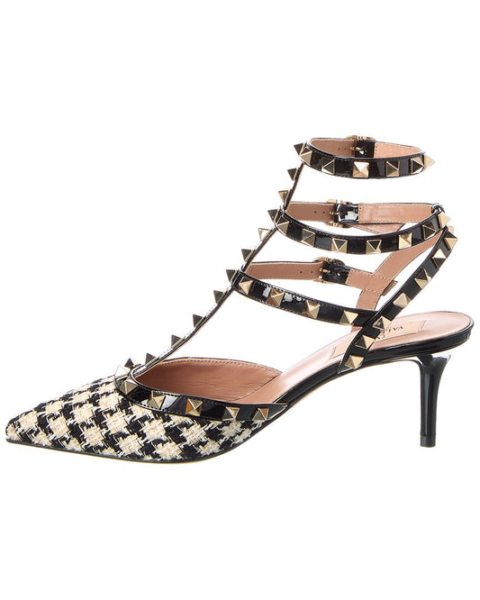 Valentino Rockstud Caged 65 Tweed & Patent Ankle Strap Pump