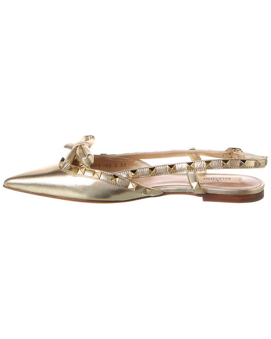Valentino Rockstud Bow Leather Slingback Ballerina Flat