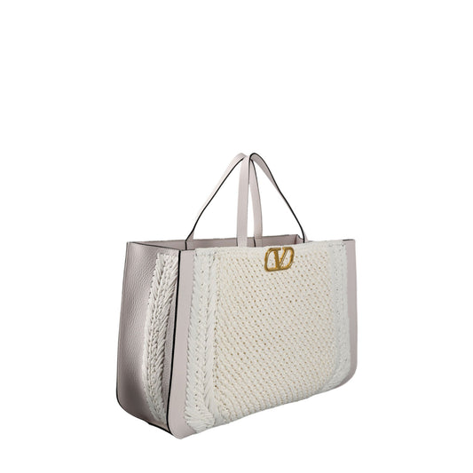 Valentino Garavani V'Logo Signature Crochet Raffia Tote Bag