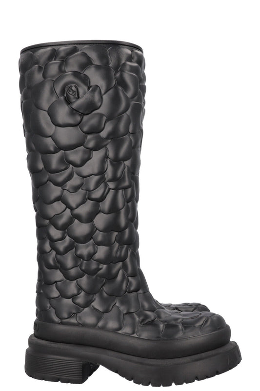 VALENTINO Floral Embossed PVC Knee High Boots Black
