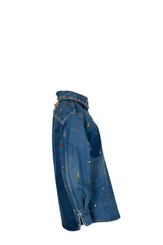 VALENTINO Crystal Fruit Embellished Denim Shirt