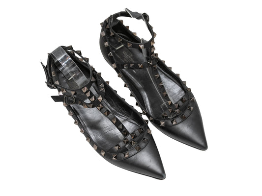 Black Valentino Pointed-Toe Leather Rockstud Flats Size 38