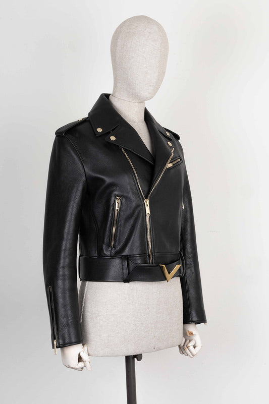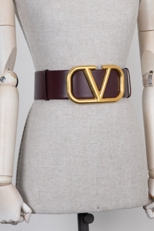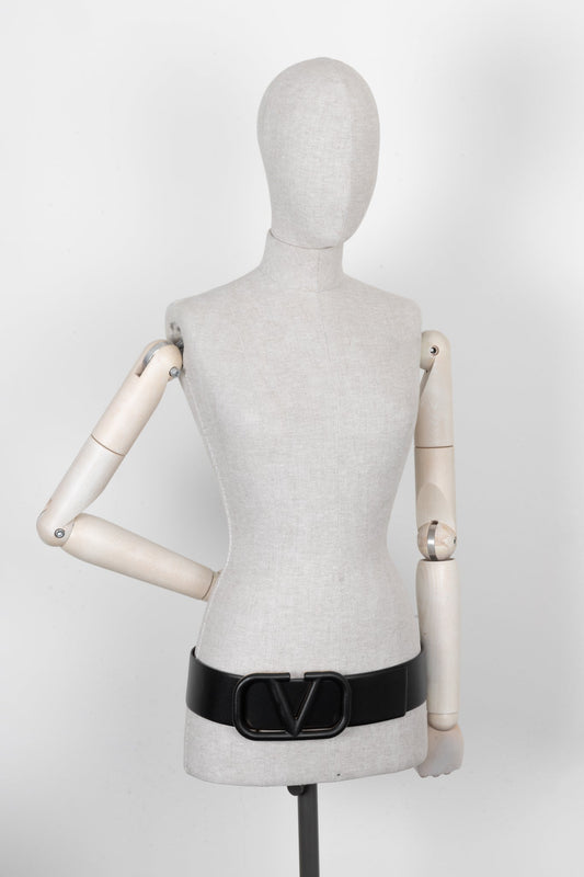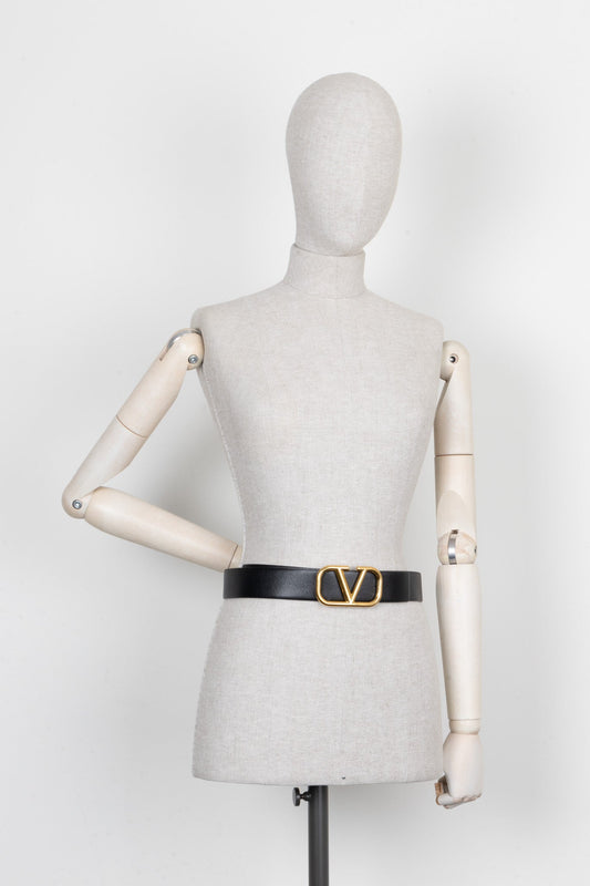 VALENTINO V Logo Reversible Waist Belt Leather Black