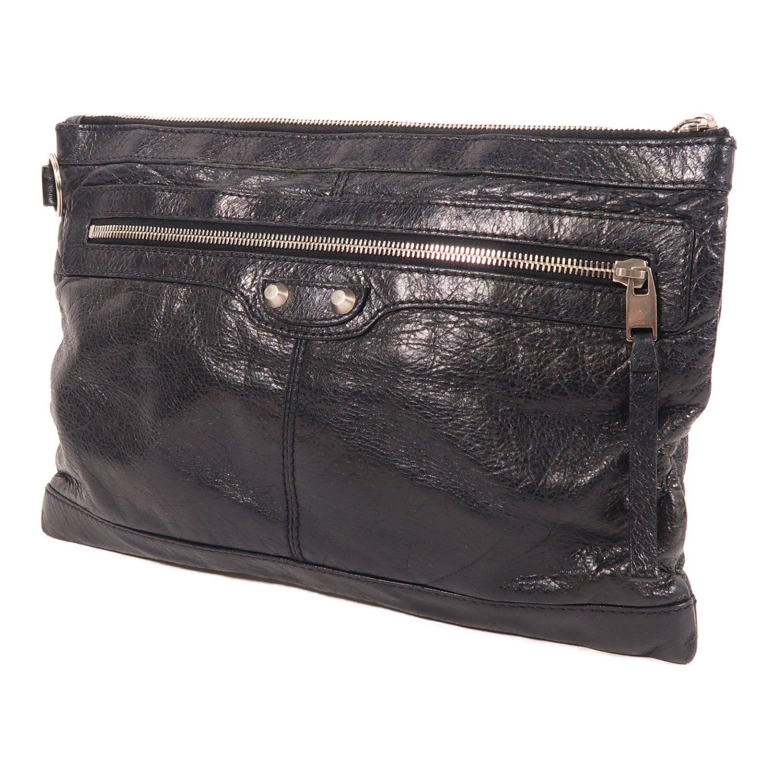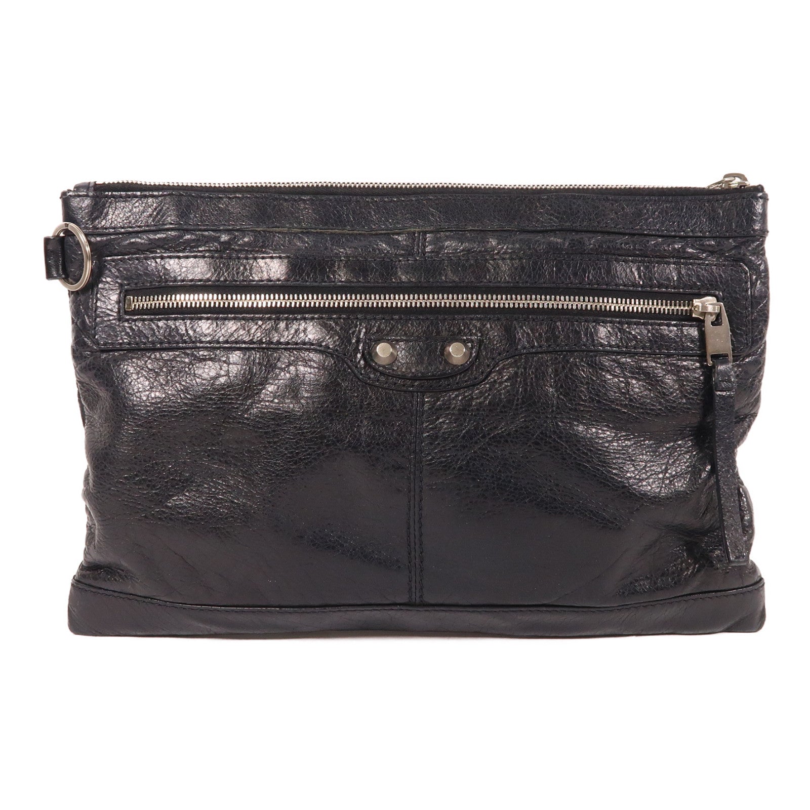 BALENCIAGA Clutch銀扣手拿包黑色