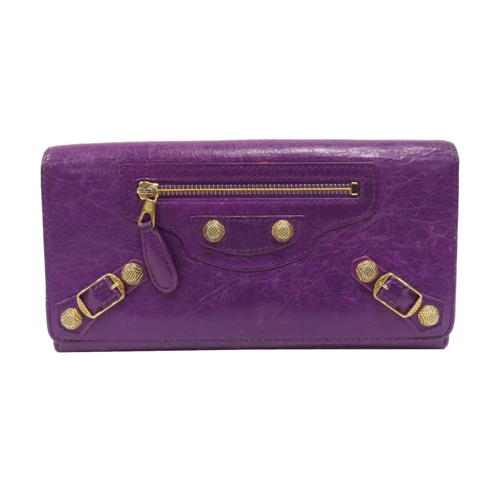 BALENCIAGA 【激減優惠】羊皮皮革City Long Wallet金扣長錢包紫色